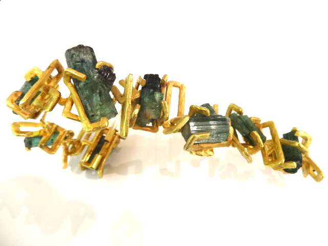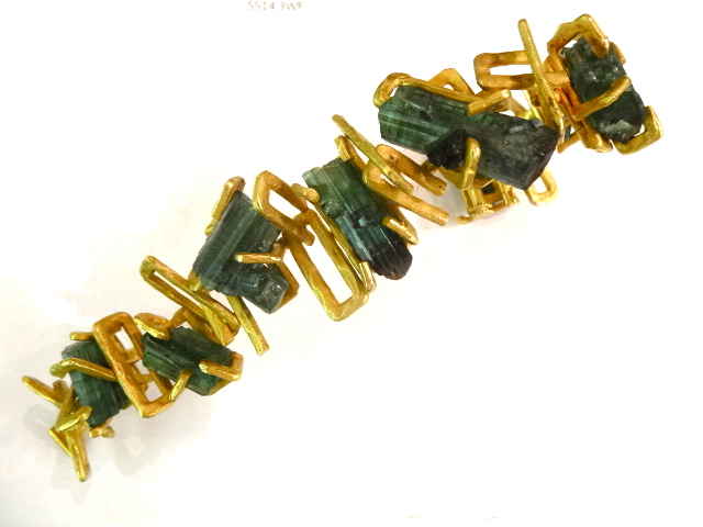 Wonderful bracelet designed by ANDREW GRIMA for Hooper Bolton with rough cut tourmaline in 18ct gold.